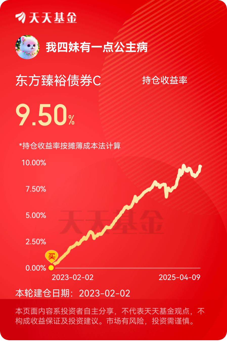 债市目前处于拉升状态,丢蛋可控,向超长债的丢多点,其他都不多,或许尾盘能拉红,今天是低开局,一整天都在拉升!$东方臻裕债券C$ #晒收益#