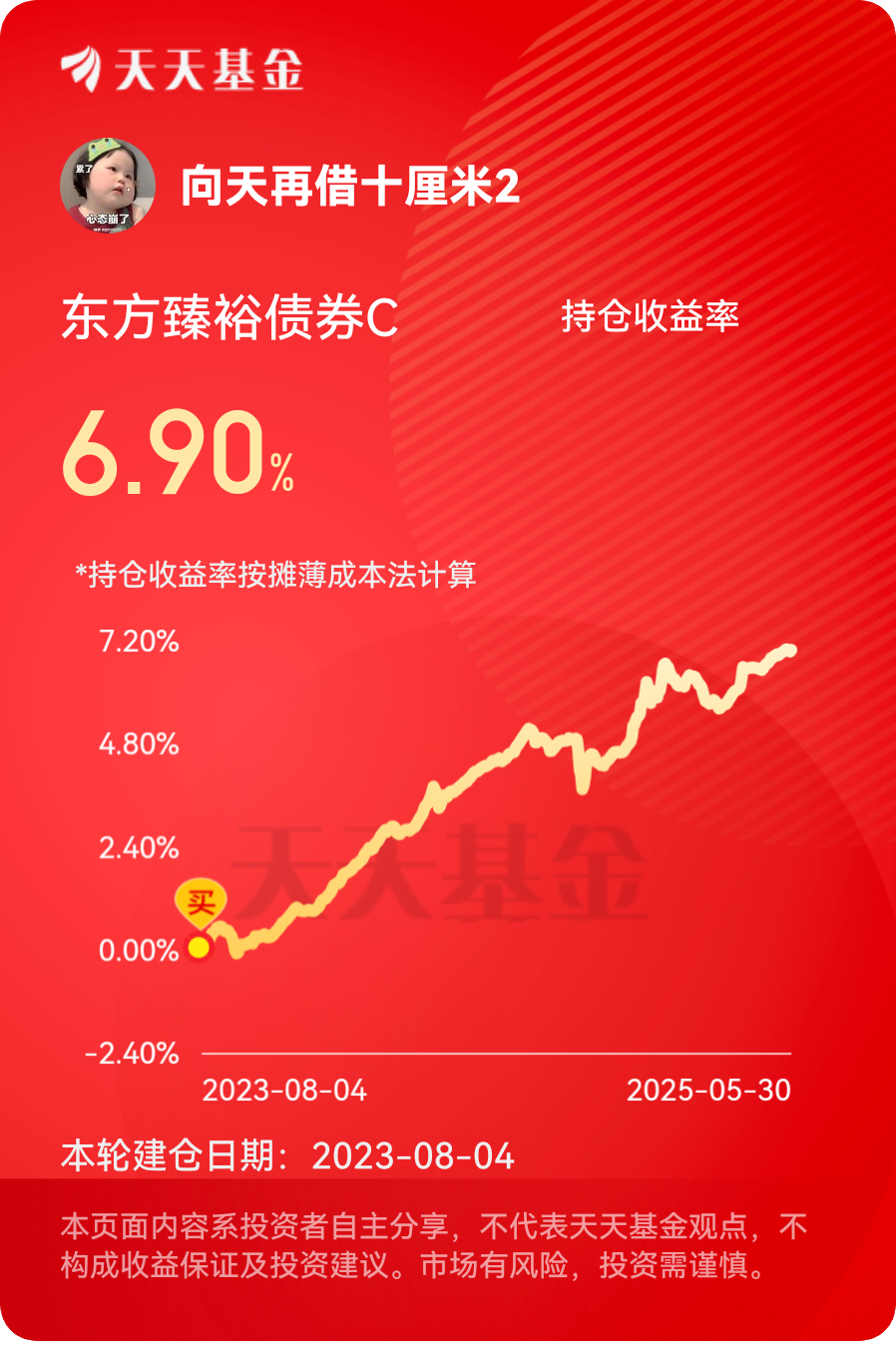 6月的第一天,今天黄金,信用债,股都很不错,利率债目前有所拉升,希望晚上能够不碎蛋,目前持仓还是以信用债为主!$东方臻裕债券C$ #晒收益#