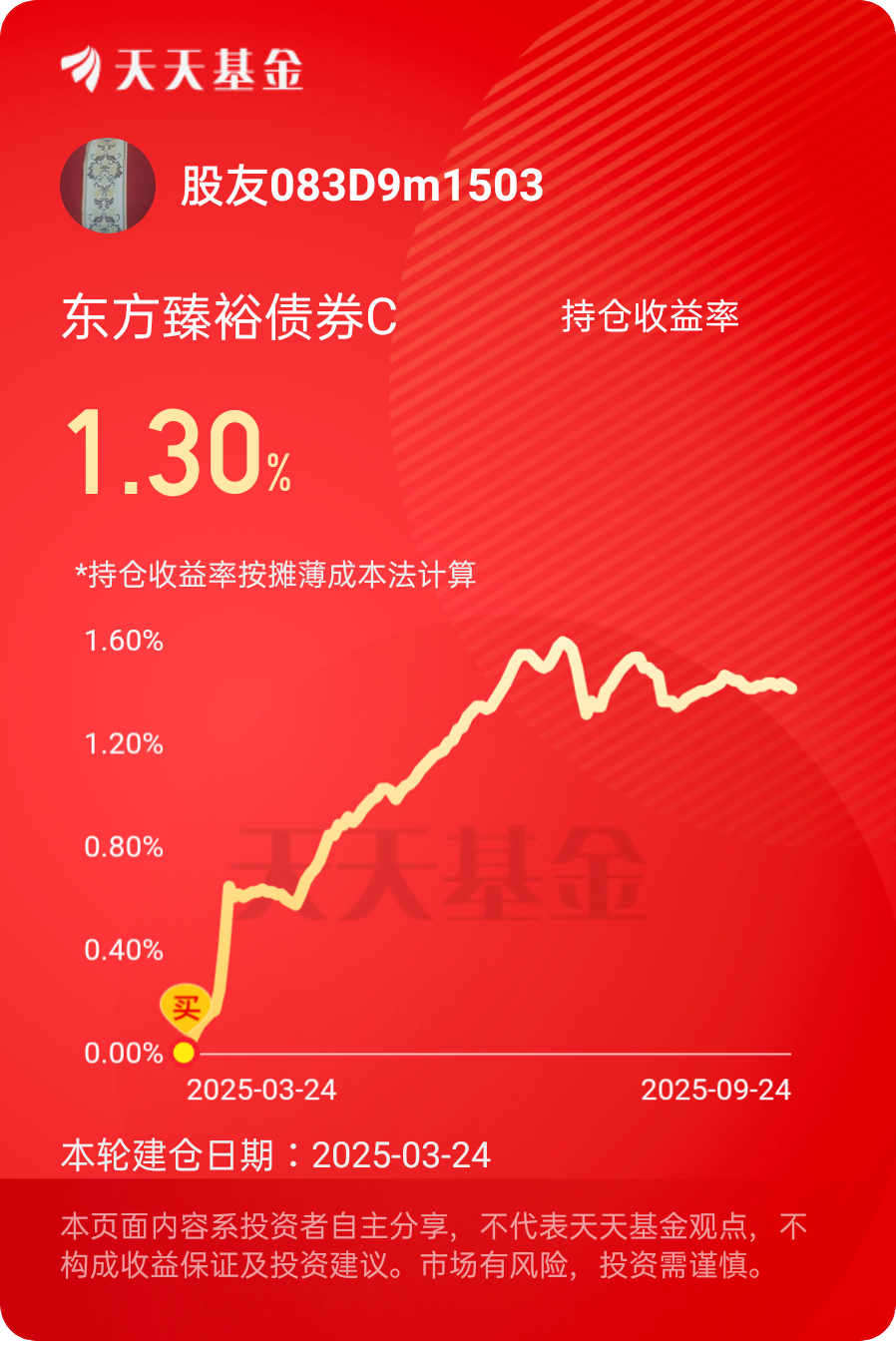 在大A市场里本就没有绝对的输赢,稳健选手就尽量选择相对稳一点的债基,长期放着也能赚一笔不小的收益也避免自己瞎折折腾了$东方臻裕债券C$ #晒收益#
