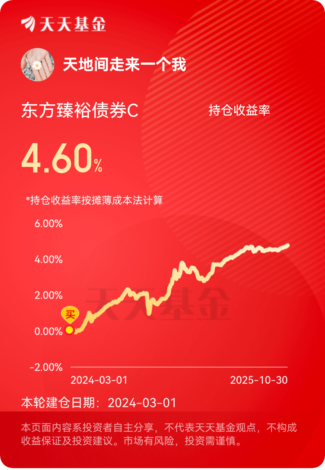 债市呃呃春天来了,这一周表现的都不错,今天红的更多,坐等收蛋了。$东方臻裕债券C