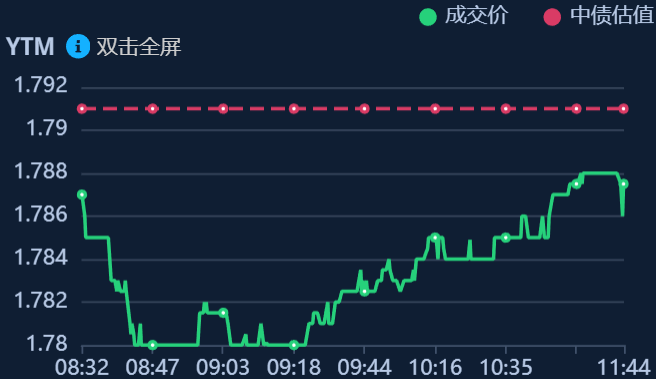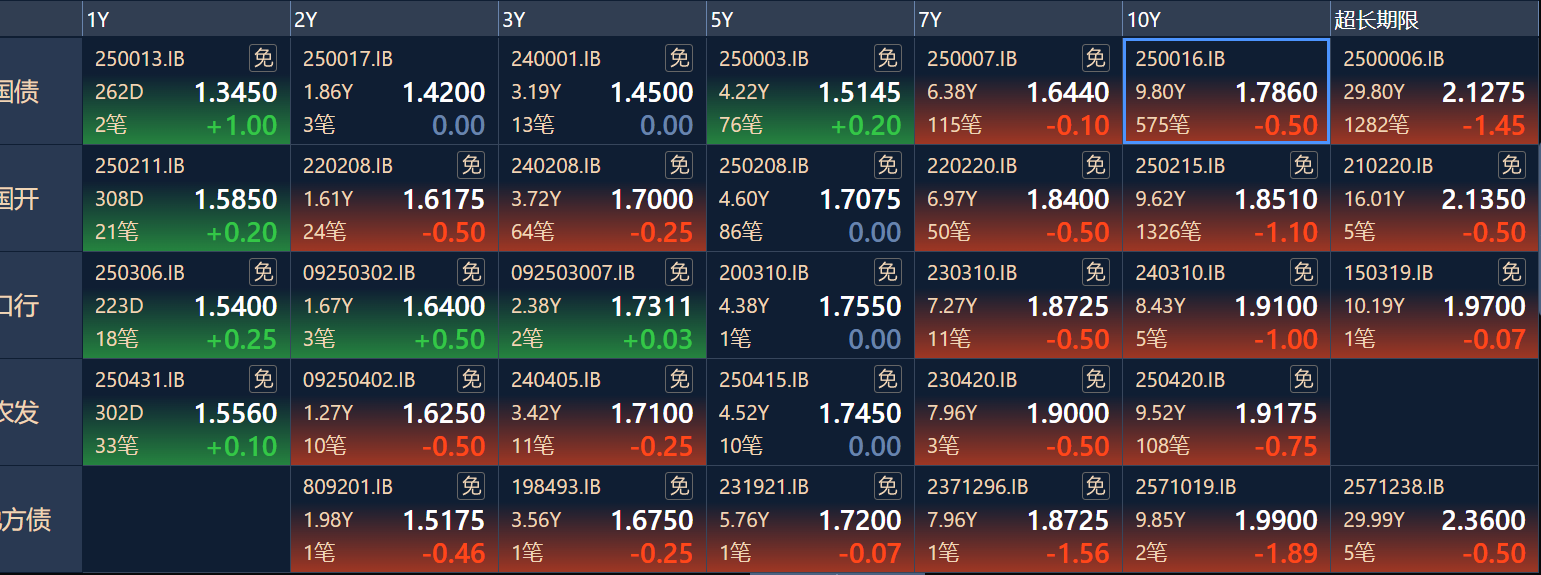二、十年期国债收益率:1.7875 -0.0035%(国债收益率越涨,债市越跌,两者反向关系)