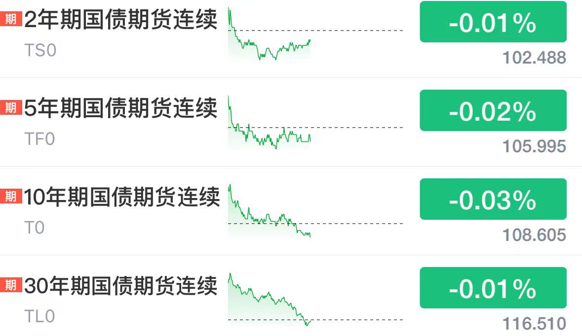 一、国债期货:-0.028%(反映市场对未来债市预期,国债期货越涨,债市越涨,两者正向关系)