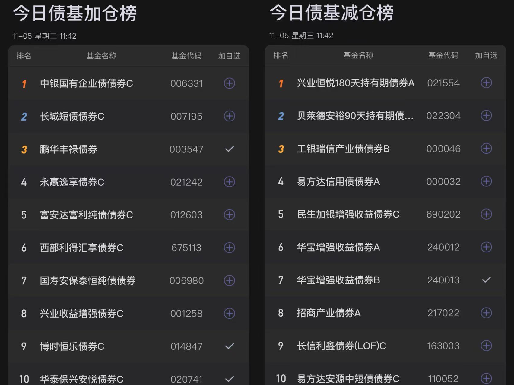 $汇添富添添乐双盈债券A(OTCFUND|017592)$ $永赢稳健增强债券C(OTCFUND|014089)$ $中银证券安弘债券A(OTCFUND|004807)$ $长城短债C(OTCFUND|007195)$ $中邮纯债恒利债券C(OTCFUND|002277)$ $博时裕乾纯债债券C(OTCFUND|002404)$ $天弘永利债券B(OTCFUND|420102)$ $富国优化增强债券E(OTCFUND|018980)$ $富国中债7-10年政策性金融债ETF发起式联接E(OTCFUND|019596)$ #“马”字辈股大涨!“玄学炒股”又来A股?#$南方中债7-10年国开行债券指数C(OTCFUND|006962)$