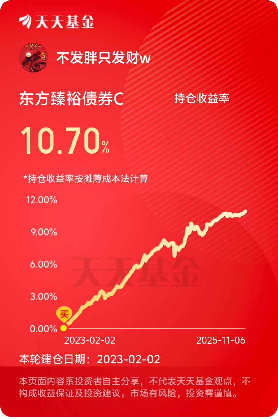 $东方臻裕债券C$ #晒收益#