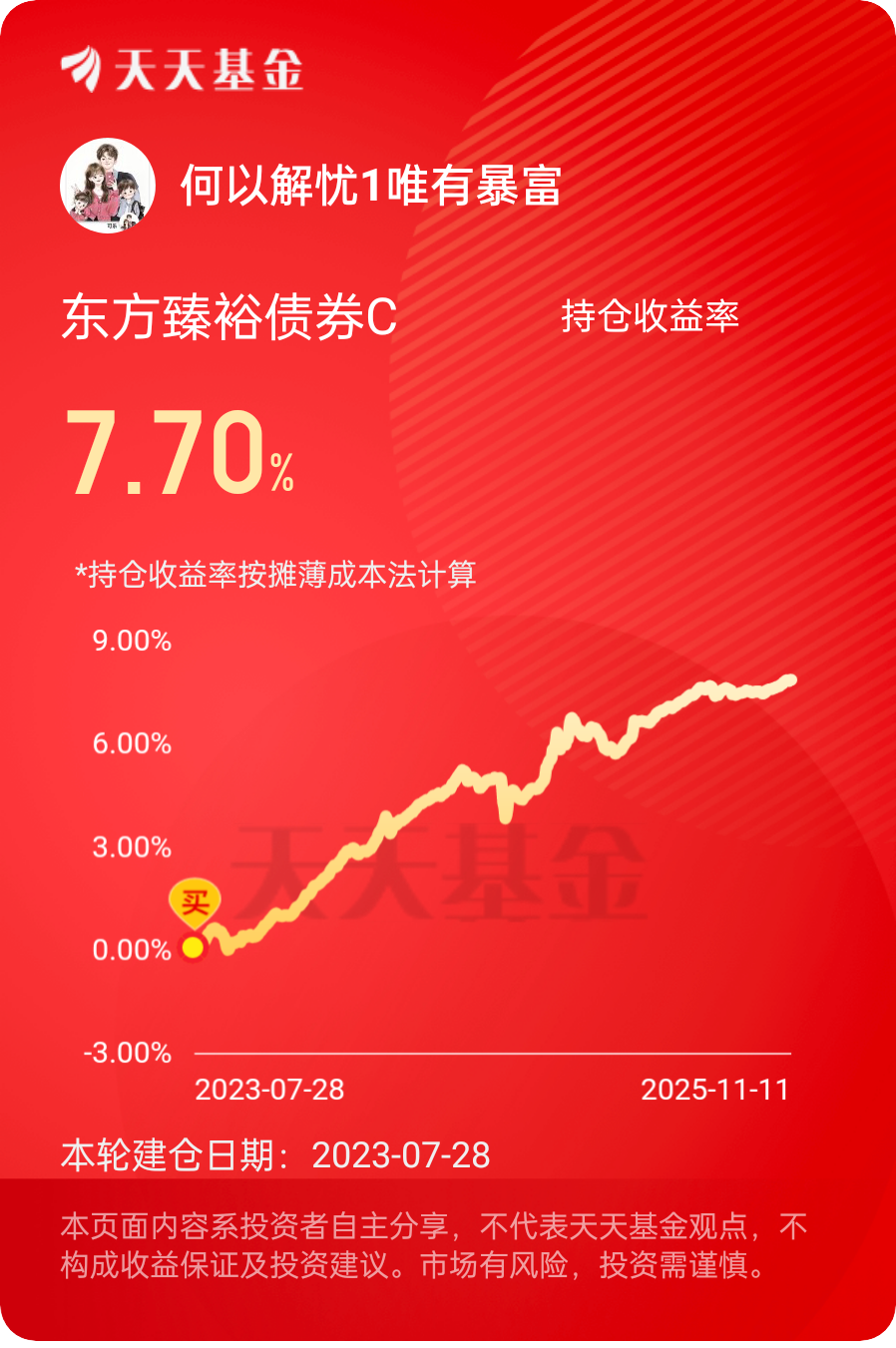 债市行情稳得一批!今天接着小晴天,利率债交易热度拉满,不管短期还是长期利率都很亮眼,信用债更是大面积飘红,这赚钱机会不得抓住~$东方臻裕债券C$ #晒收益#