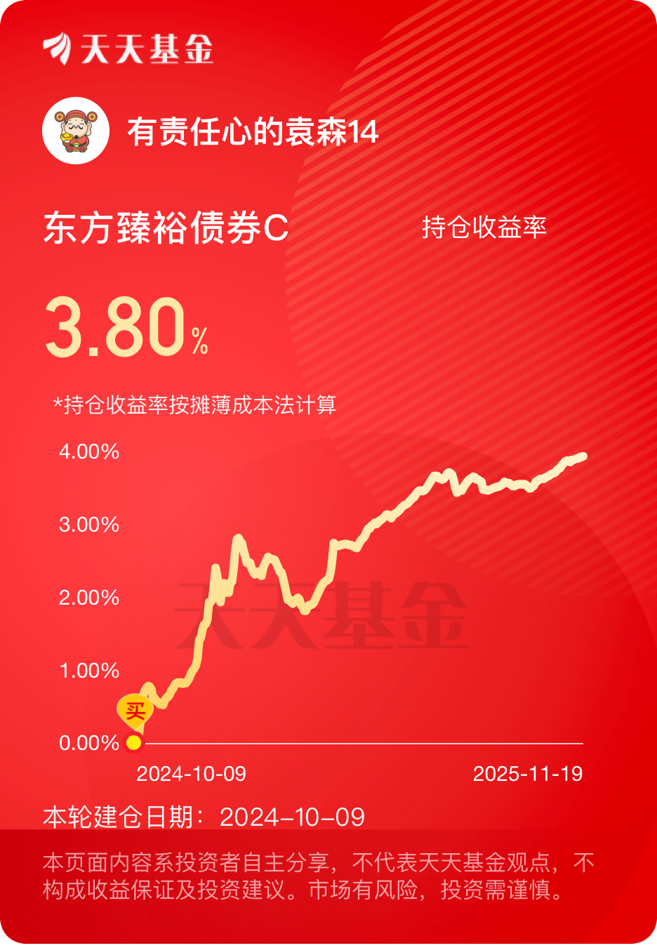 用定投的方式买债基很省心,市场波动反而能摊薄成本,长期收益更稳健。$东方臻裕债券