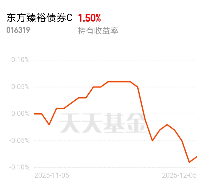 债市近期调整确实让人揪心,但波动本就是市场常态;当前配置价值已显现,资金面也有支撑,长期持有能对冲波动,不必恐慌,多些耐心就好。$东方臻裕债券C$
