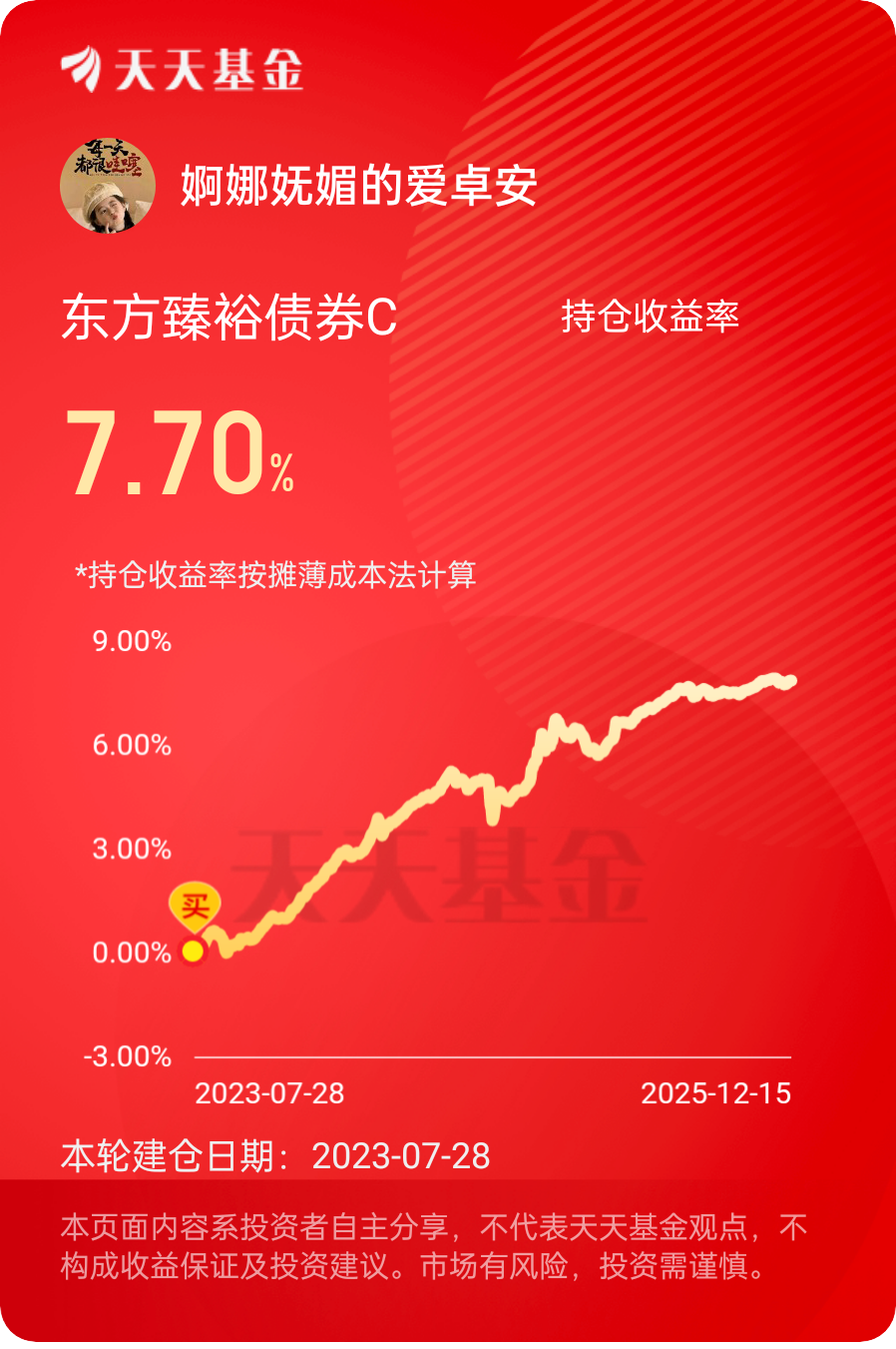 理财想图个安稳?债基绝对是佳选!今日利率债午盘拉升,债市行情好转,踏踏实实持基,惊喜自然来。$东方臻裕债券C$ #晒收益#