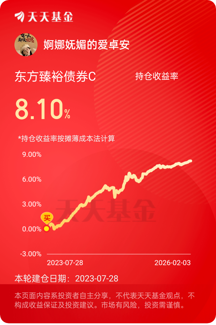哇哦!债市今天表现得很稳,波动不大,昨天那波小调整也基本消化完了。资金面还是很宽松的,整体节奏偏稳,拿着就很踏实,不用太担心~$东方臻裕债券C$ #晒收益#