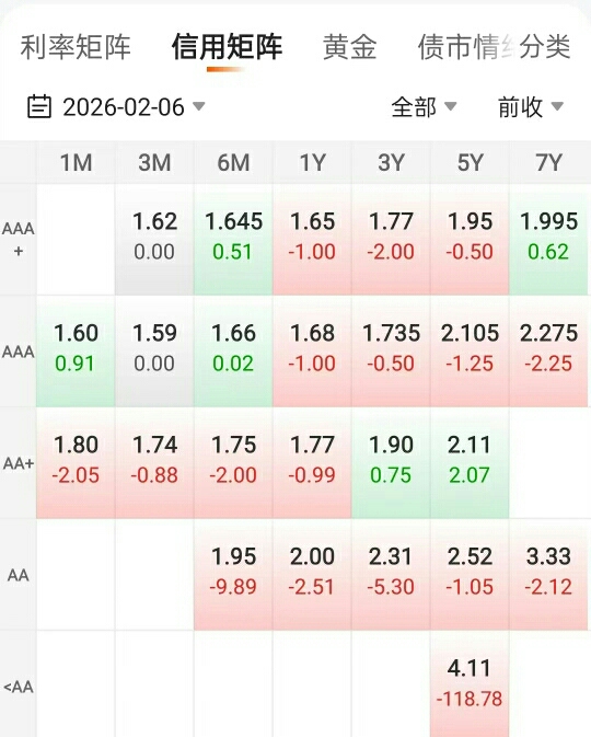今天债市这行情太猛了!你看这两张图里红彤彤一片,不管是利率债还是信用债,收益率集都很好,说明大家都在疯狂买债,价格自然就被推上去了,手里持有的小伙伴今天应该都挺开心的。