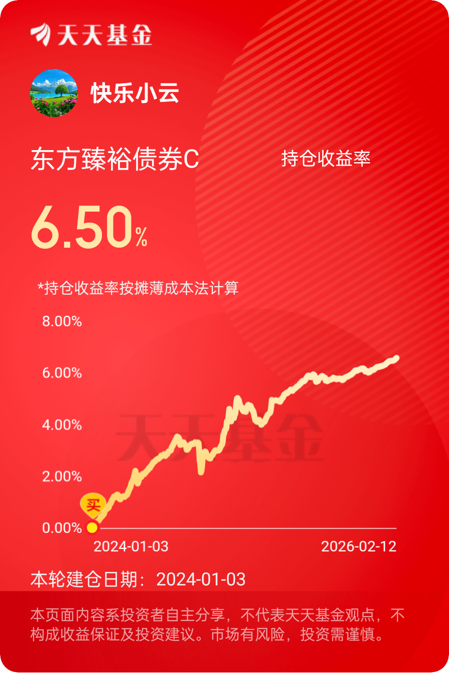 假期将至债市平稳运行,收益率稳中有落,流动性充裕护航,持债过节不折腾,稳稳幸福过新年。$东方臻裕债券C$ #晒收益#