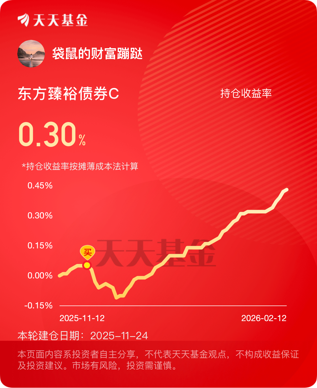 债基今天平稳运行,节前资金面宽松,市场波动小,收益稳中有进。安心持有,稳稳过个好年。#下个风口赛道是谁?# #晒收益#