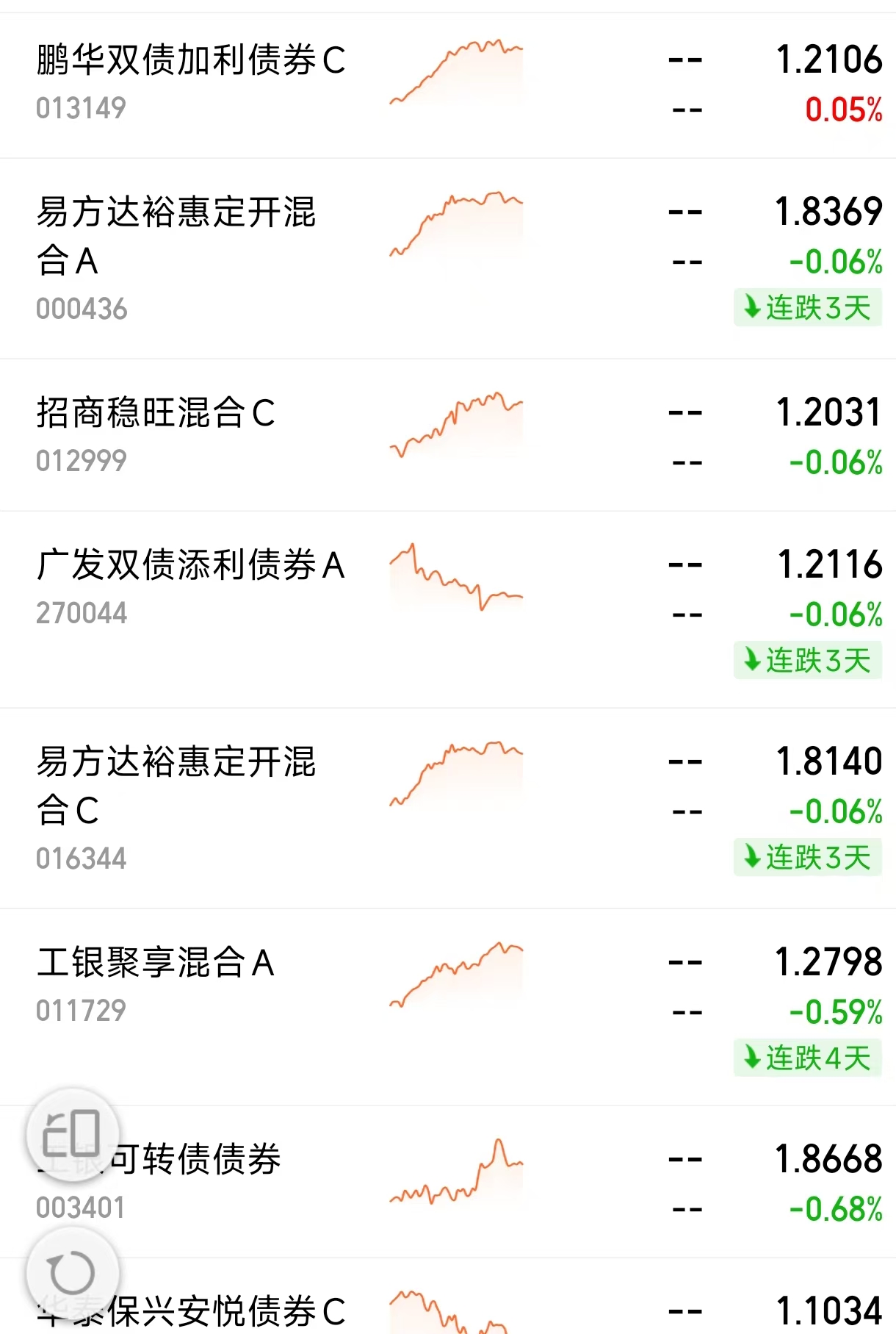 市场整体氛围偏谨慎,成交量能不足,债市下跌对稳健型投资者不太友好。我的基金持仓中,$鹏华双债加利债券C$(013149)表现亮眼,收了5个蛋,招商稳旺C(012999)碎了6个蛋,华泰保兴安悦债券C(020741)碎了93个蛋。鹏华双债在控制回撤方面的能力,让人持有起来很放心。#12月你看好哪条投资主线?#