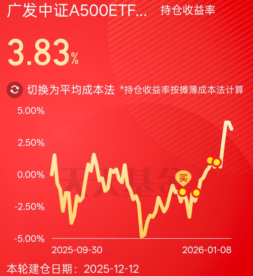沪指站稳4000点,牛市氛围愈发高涨,各路资金开始跑步入场,行情由科技独霸天下转向多赛道扩散,为避免押错赛道而错失大牛行情,配置些宽基指数是十分有必要的,今天按计划加仓一笔中线持仓的$广发中证A500ETF联接A(OTCFUND|022424)$ 。