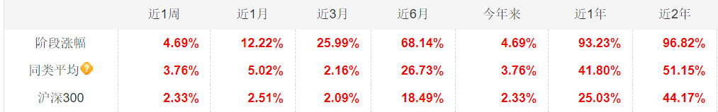 优秀的选股能力,带来出色业绩。1年大涨93.23%,跑赢同类平均超51%,优于96%的同类产品。今天加仓一笔,如有回调择机低吸。