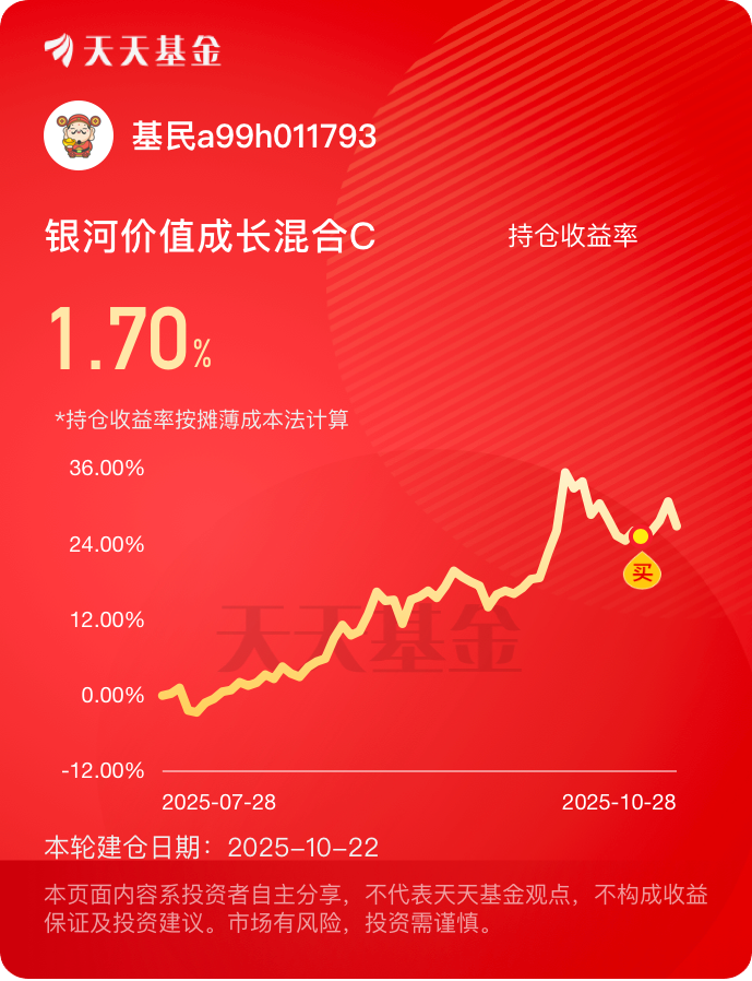 紧抓周期行业红利,持股集中不分散,近3月涨26%+收益稳且爆发力强。拿着期待下$银河价值成长混合C$ #晒收益#