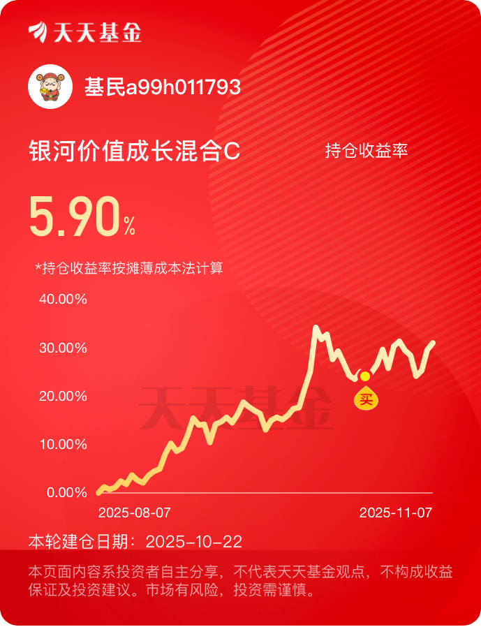 布局的有色金属、化工等周期板块,行业景气度处于上升周期,近3个月超31%,未来潜力满满呀继续拿着!$银河价值成长混合C$ #晒收益#