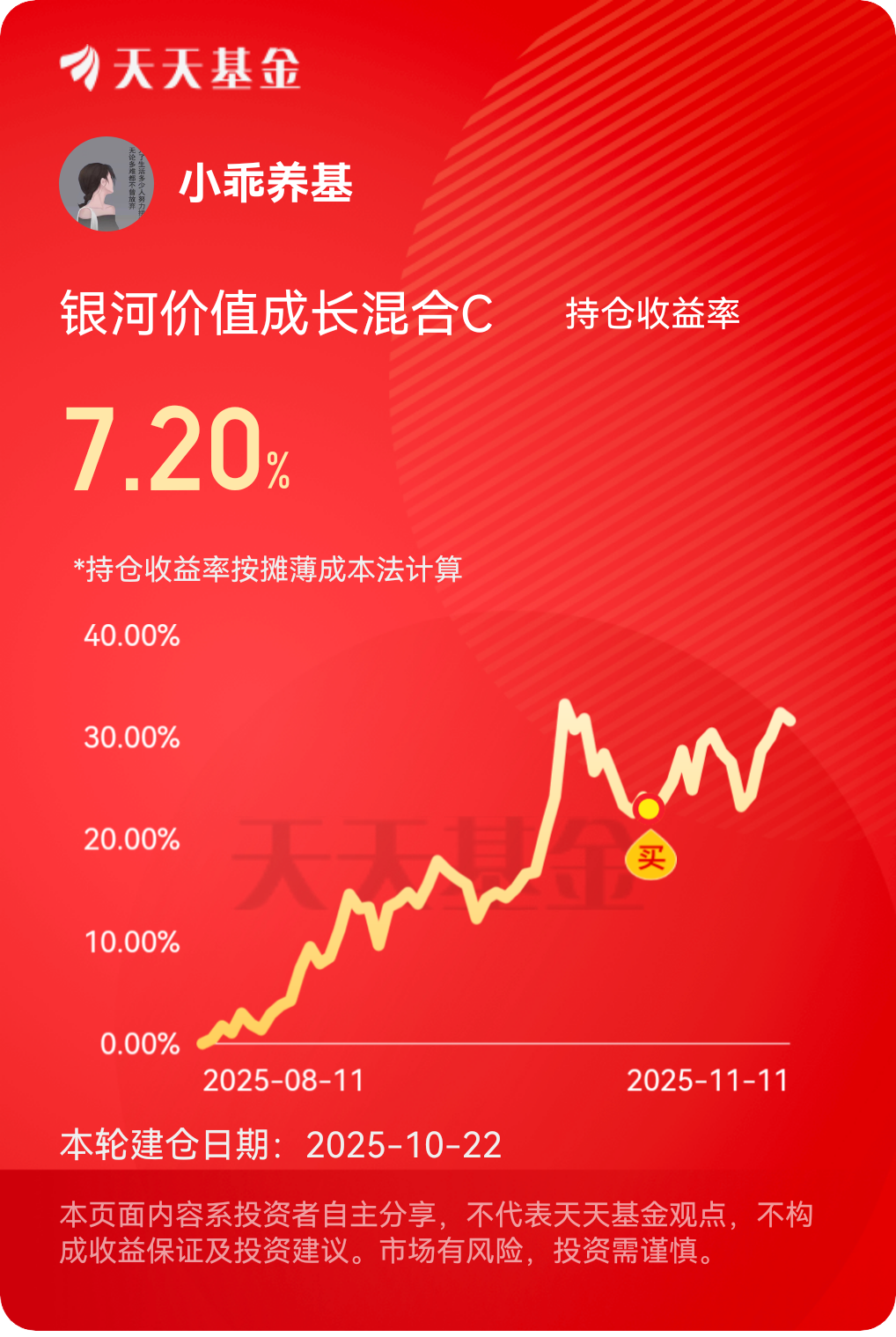 今天个股跌多涨少,板块还是分化的,今天$银河价值成长混合C$ 微跌,不过波动不大,总体来看近期有色金属和基础化工涨多跌少, 跑赢多数同风格基金,超额性价比高,我要继续拿住把握周期机遇了#晒收益#