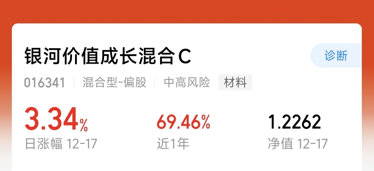 今天我决定果断布局$银河价值成长混合C$ 这次聚焦有色金属的主动混合基金。昨天上涨了3.34%。目前重仓持有洛阳钼业、铜陵有色、紫金矿业,等有色金属龙头,同时还有华鲁恒升、东方铁塔等细分领域的佼佼者,指标适当调整持仓结构。同时在配置周期制造板块的同时,也会挑选部分受益于人工智能产业浪潮及国产替代的新材料标的,注重价值与成长并重的投资理念,业绩表现的长期也是不错。昨天上涨3.34%,近一年上涨了69.4%,我看好基金长期的稳定收益表现,今天我先上车500,做长期资产配置!