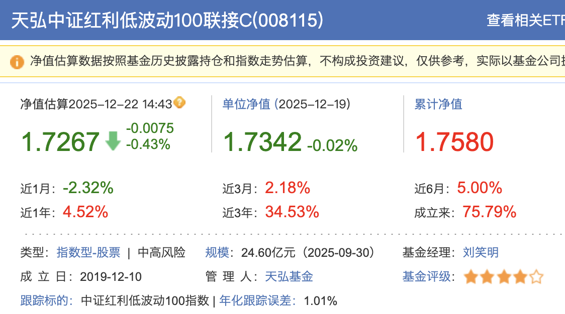 红利低波:今日科技板块强势反弹,而红利主线震荡调整,恰为防御型资产提供低位布局良机。我借机加仓 1万元$天弘中证红利低波动100联接C(OTCFUND|008115)$,进一步夯实组合的稳健底仓。