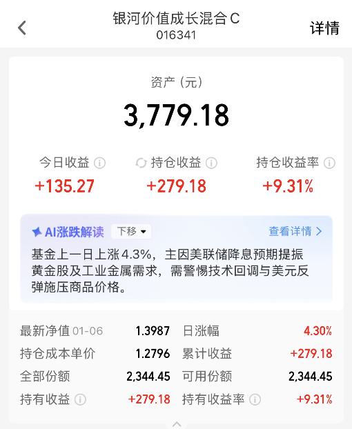 我最近一直分批定投$银河价值成长混合C(OTCFUND|016341)$,作为主动基金,主动布局工业金属与黄金双主线工业金属属于AI与新能源需求,黄金提供避险底仓。