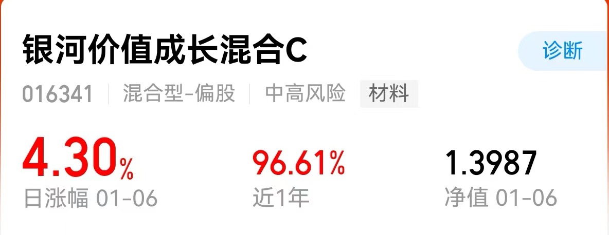 本来对资源混合基没抱太高期待,结果$银河价值成长混合C$涨了4个多点,净值曲线一