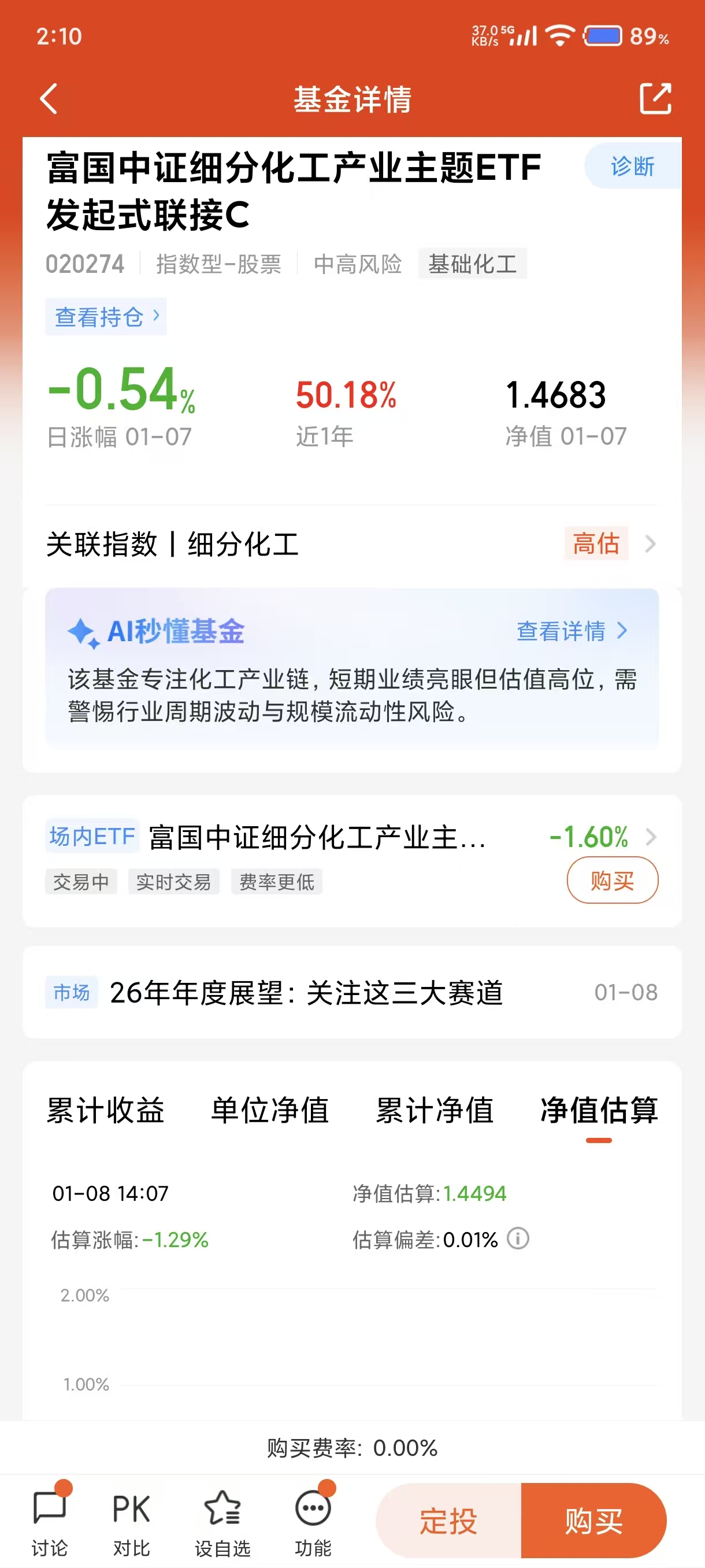 今天我选择加仓1000元富国中证细分化工产业主题ETF发起式联接C(020274),基金紧密跟踪中证细分化工产业主题指数,聚焦于化工行业的投资机会,包括传统周期龙头和新能源(如锂电材料)、新材料等成长领域。$富国中证细分化工产业主题ETF发起式联接C(OTCFUND|020274)$