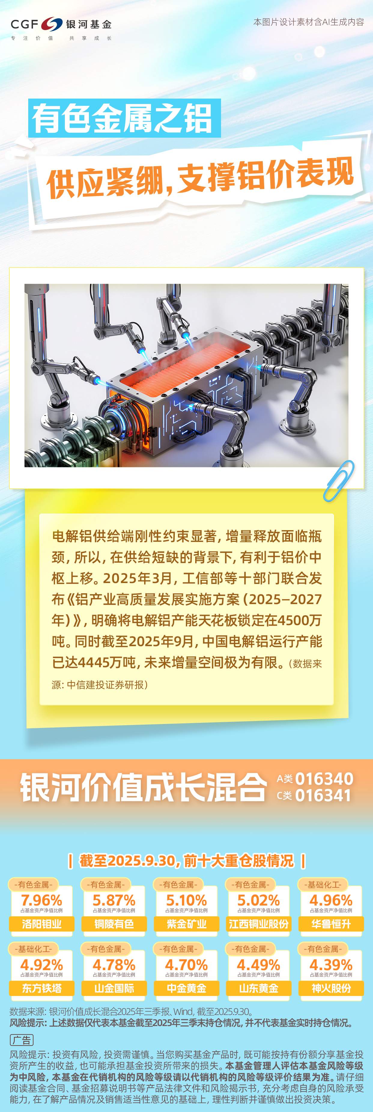 电解铝供给端刚性约束显著,增量释放面临瓶颈,所以,在供给短缺的背景下,有利于铝价中枢上移。2025年3月,工信部等十部门联合发布《铝产业高质量发展实施方案(2025-2027年)》,明确将电解铝产能天花板锁定在4500万吨。同时截至2025年9月,中国电解铝运行产能已达4445万吨,未来增量空间极为有限。(数据来源:中信建投证券研报)