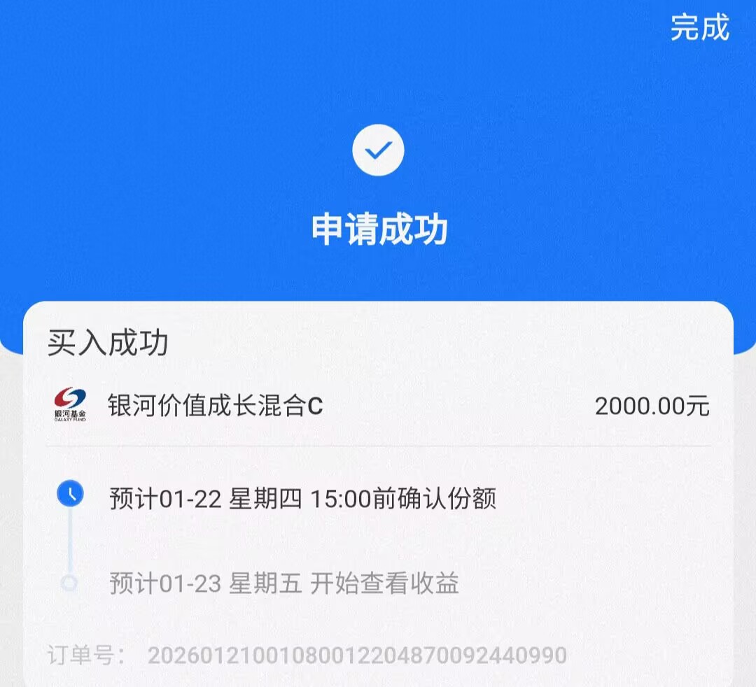 加仓2000元$银河价值成长混合C(OTCFUND|016341)$ ,最近大盘出现较大波动,但是该基金走势却是非常稳健,之前连续两天上涨,净值再创新高,我的持有收益也连创新高,是我近期表现最稳最强基金之一。从持仓上看,该基金聚焦有色金属和基础化工两大强周期赛道,近期欧美由于格陵兰岛问题矛盾升级,避险情绪升温,日前丹麦养老基金计划在本月底钱清仓美国国债,美元指数跳水,引发黄金突破4800美元,对A股有色金属又形成明显利好。