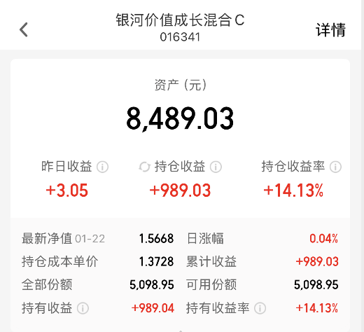我最近持续定投的$银河价值成长混合C(OTCFUND|016341)$,作为主动基金,灵活调仓平衡周期与避险资产,主要配置方向就是黄金和工业有色金属,今日净值竟然会逆市微涨0.04%,目前持仓盈利14.13%,继续坚定持仓!
