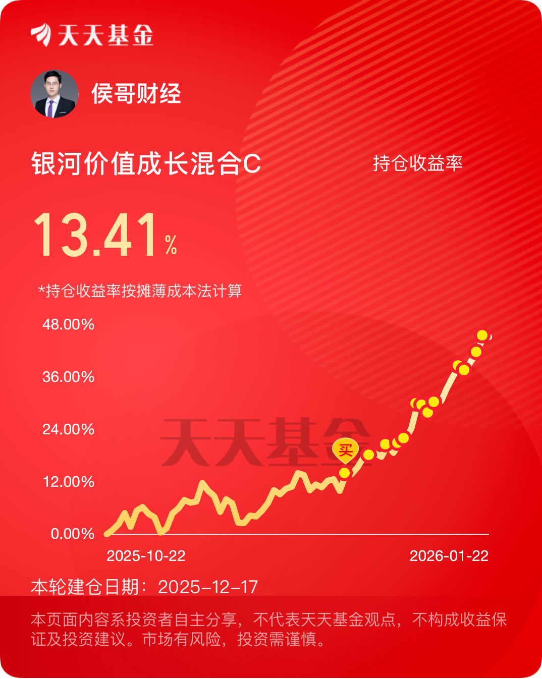 有色板块的预期依旧强烈,$银河价值成长混合C$ 不知不觉持有收益率达到了13.41%!