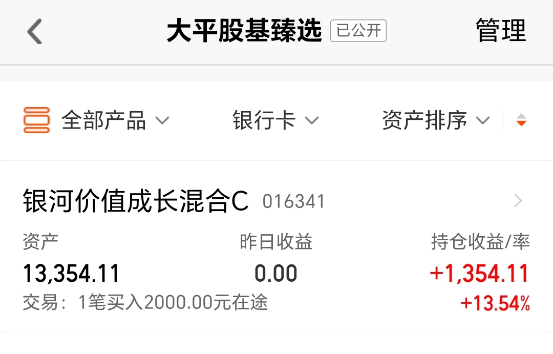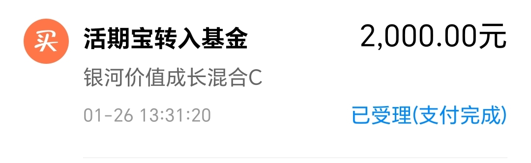 今天我买入$银河价值成长混合C(OTCFUND|016341)$2000块钱。