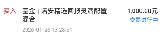 今天我买入$诺安精选回报混合(OTCFUND|002067)$1000块钱。