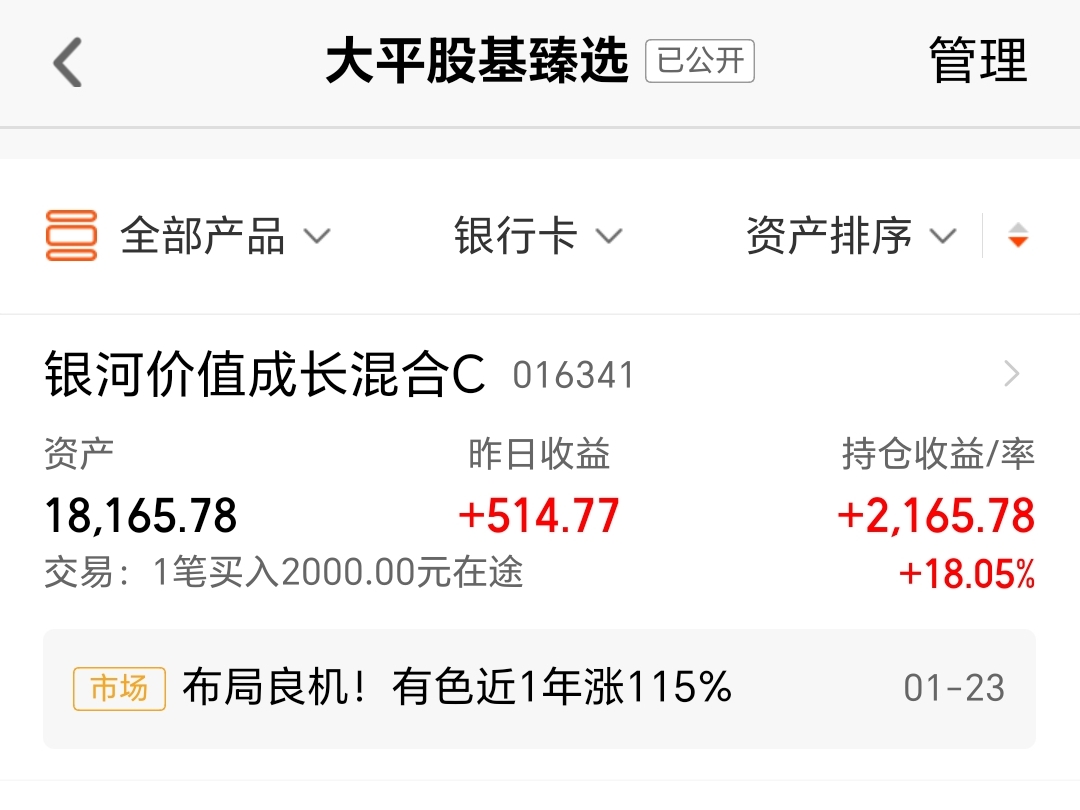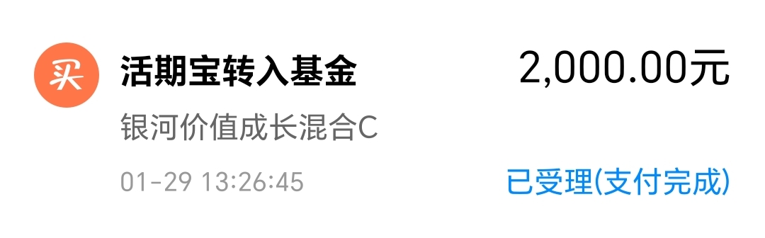 今天我买入$银河价值成长混合C(OTCFUND|016341)$2000块钱。