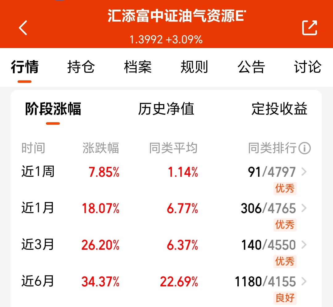 这个基金聚焦油气产业链上下游,一键布局国家支柱产业,纯度与弹性双优!昨天单日涨超3%,近1月涨超18%、近3月超26%、近6月大涨34%、爆发力不错。