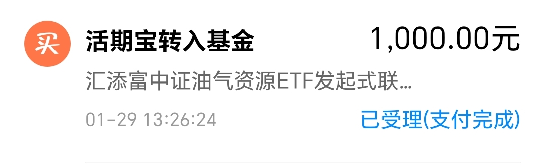 今天我买入$汇添富中证油气资源ETF发起式联接C(OTCFUND|023145)$1000块钱。