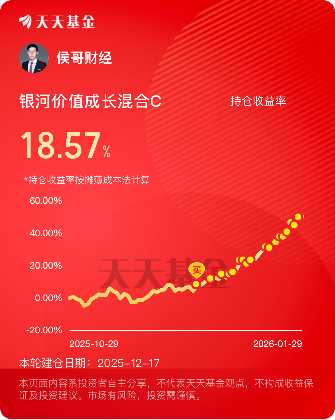 截止目前持有收益率达到18.57%,考虑到周期牛一般不会短期结束,后续还会继续定投,继续格局到底!