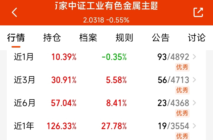 今天有色小幅回调,不影响后续上涨,也可以逢低加仓了$万家中证工业有色金属主题ETF发起式联接A$ 。