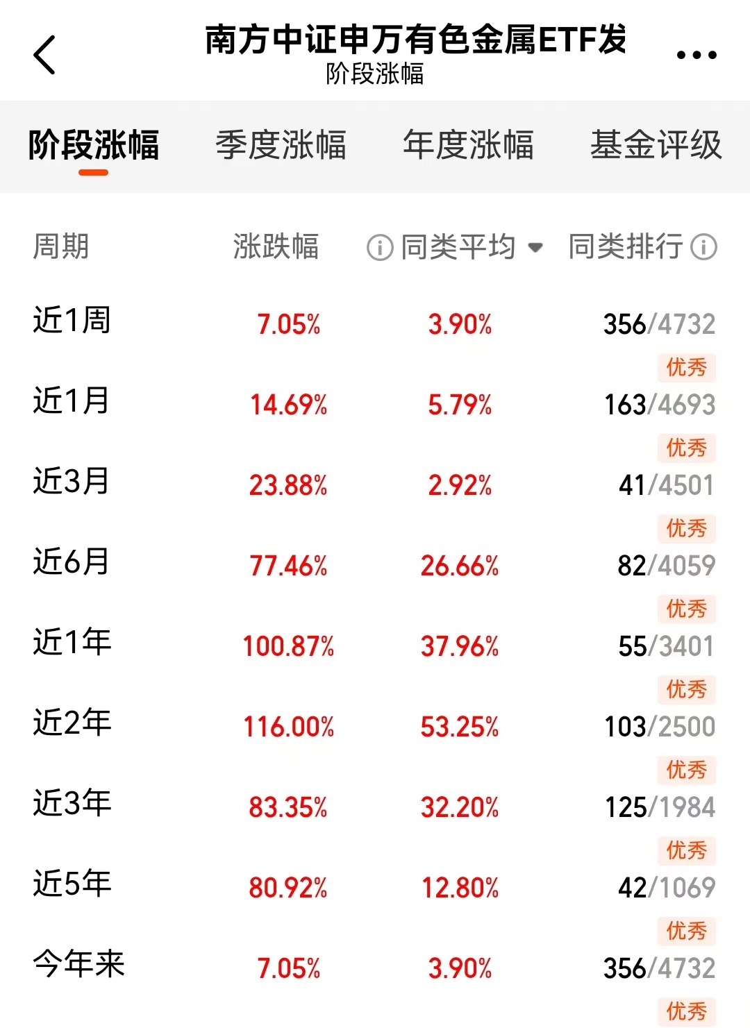 今天买了点$南方中证申万有色金属ETF发起联接A$(004432)。这两天市场不是反弹了嘛,我注意到有色板块反应特别快,昨天一天就涨了4%,这引起了我的注意。去查了下资料,发现这个板块去年整体涨了92%,挺惊人的。我觉得这背后是基本面的变化,经济周期的复苏会带动从建筑到制造各个方面的需求,而资源的供给又不是说增加就能马上增加的,这个时间差就会带来机会。市场上相关的积极信息也越来越多。这只基金近一年的涨幅达到了100%,跟上了板块的步伐。我认为现在可能是一个大行情的起始阶段,值得用一部分资金去关注。#存储概念迎烈火烹油!英伟达新方案引爆#