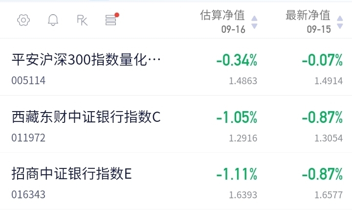 $招商中证银行指数E$ 今日估值下跌1.11%