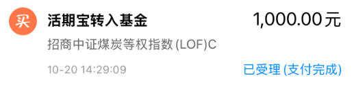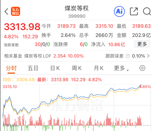 兄弟姐妹们,午后A股三大指数有所回落,市场出现明显分化,不过煤炭板块涨势坚挺,这会看依然涨超4%,继续创出年内新高,日K线呈多头排列态势,我也遵循趋势右侧追加一笔。$招商中证煤炭等权指数(LOF)C(OTCFUND|013596)$我加仓1000元,跟踪的煤炭等权指数这会看涨4.8%左右!