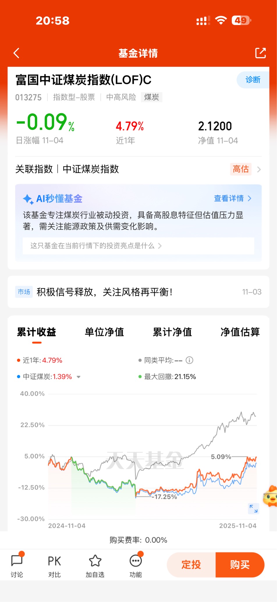 最近煤炭板块真争气!我手上的招商中证煤炭E还在爬坡,富国中证煤炭C这一个月已经涨