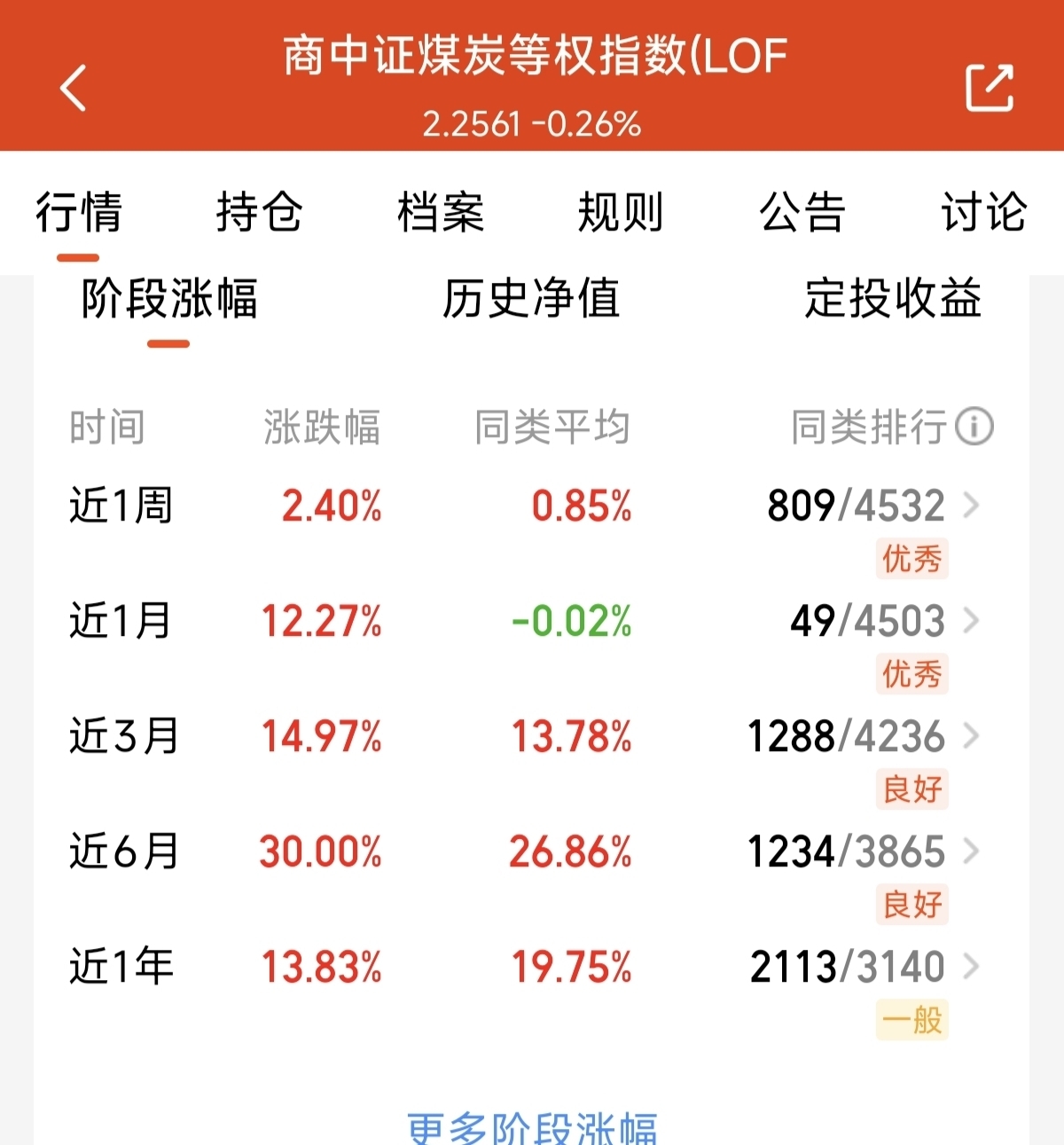 三大指数今天低开高走,表现的比预期的好。不过科技的波动还是比较大。当前稳定性好,我还是看好煤炭的表现。$招商中证煤炭等权指数(LOF)C$ 这是聚焦煤炭产业的指数基金。近半年上涨了30%。近一年上涨13.83%。长期同类都是做到了优秀,今天又是开始拉伸。估值马上就要红盘,我坚定看好四季度的突破表现。