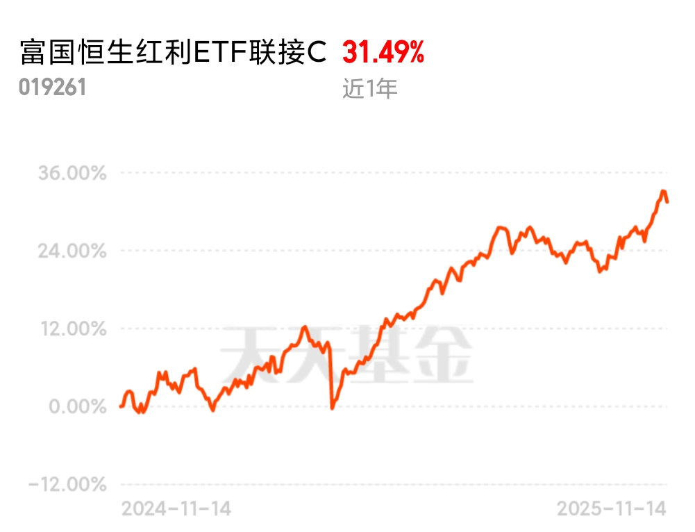 配置了招商中证煤炭E搏周期,也配了点富国恒生红利C求稳,港股高息+低波动,近1年涨29%,回撤后24天就收复失地,拿得安心。