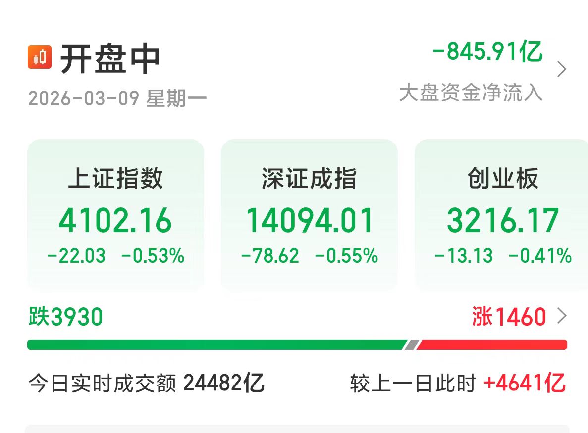 CPO板块:指数目前跌4%,受地缘冲突升级影响,国际油价(WTI原油)一度暴涨超20%,站上110美元关口。资金疯狂涌入能源等避险防御板块,导致科技成长股(如CPO)被“抽血”,形成了明显的跷跷板效应。技术形态呈现出典型的恐慌性抛售特征,短期技术指标已进入超卖区域,风浪越大,鱼越贵。只要AI算力的需求逻辑不变,CPO板块在调整后依然具备极高的配置价值,兜兜个人看来可以关注这个黄金坑机会,轻仓可低吸。