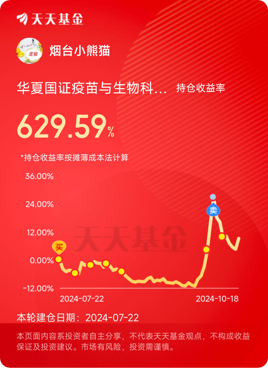 #10月你进行了哪些投资操作?# 我选择持续定投买入$华夏国证疫苗与生物科技指数发起A$ #晒收益# 在当今这个注重健康与品质生活的时代,疫苗与生物科技的发展显得尤为重要。华夏国证疫苗与生物科技指数发起A(以下简称“该基金”)正是顺应了这一时代潮流,为广大投资者提供了一个聚焦疫苗与生物科技领域的投资机会。 从投资角度看,该基金紧密跟踪国证疫苗与生物科技指数,该指数涵盖了疫苗、生物制药、生物科技服务等核心领域,具有高度的代表性和成长性。近年来,随着全球对健康的重视程度不断提升,疫苗与生物科技行业迎来了快速发展期,指数表现也颇为亮眼。 买入该基金的理由主要有三点:一是行业前景广阔,疫苗与生物科技是未来医疗健康领域的重要发展方向;二是该基金跟踪的指数具有较高的成长性和稳定性,长期来看有望获得稳定的超额收益;三是华夏基金作为国内知名基金公司,拥有强大的投研实力和管理经验,能够为投资者提供优质的投资服务。 总之,华夏国证疫苗与生物科技指数发起A不仅是一只具有投资价值的基金产品,更是守护我们健康的未来之选。@华夏基金