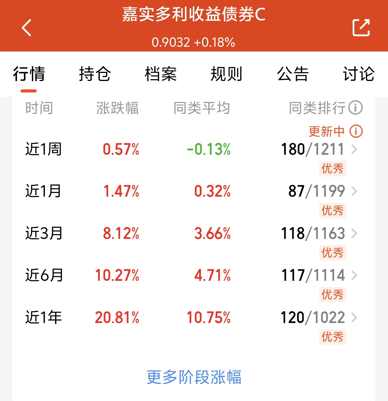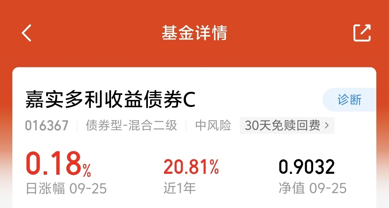 $嘉实多利收益债券C$ 基金表现的也是非常的优秀。今天晚上单日收益18个蛋。近三个月收益812个蛋,近一年的收益率高达20.81%,收益屡创新高。基金收益曲线平稳向上,回撤小,修复能力快,也是一个能涨抗跌的优质基金。基金采取股、债平衡策略,既有债券作为底仓稳固收益,又有权益资产增厚收益。灵活搭配,收益率高。长期持有,投资回报率高,期待后期收益。