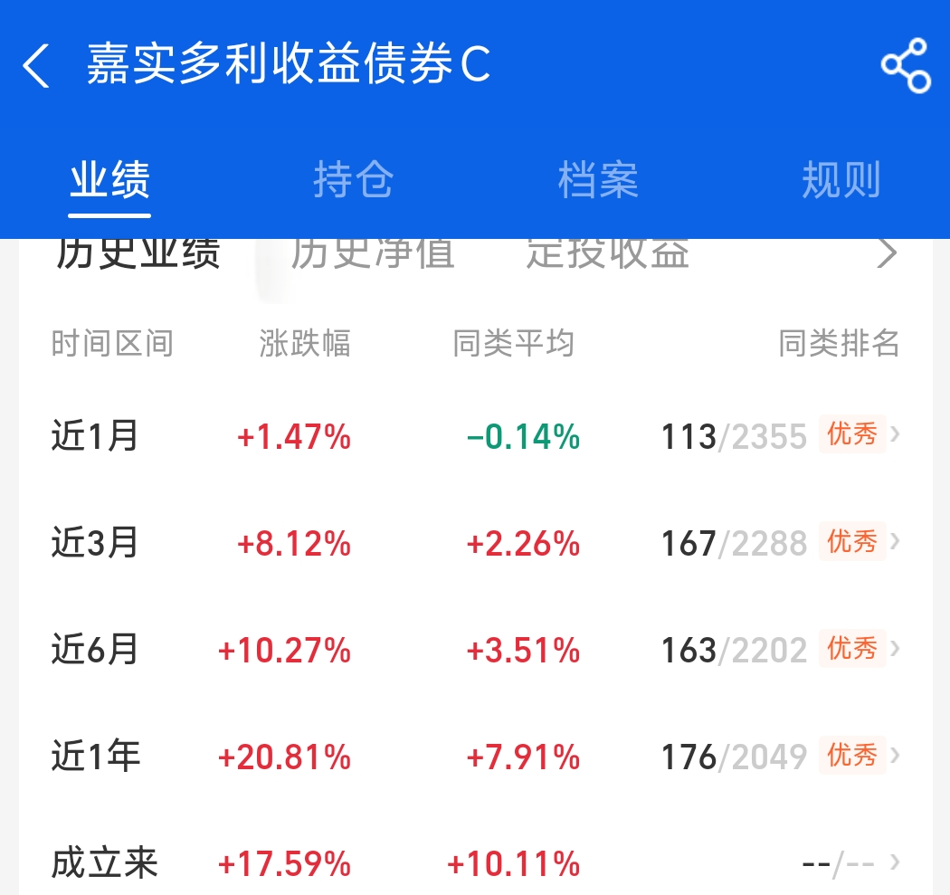 $嘉实多利收益债券C$ 昨天市场利率逐步回暖这个固收逆袭收了18个蛋,像今天这个行情还能企稳一波吗,近期还得固收的方向比较香,近一个月收了147个蛋,近一年涨了20.81%,业绩还是比较榜的啊!