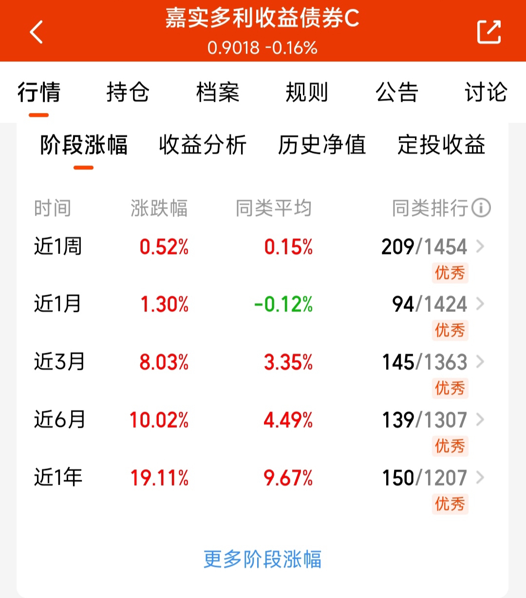 指走势强劲。$嘉实多利收益债券C$ 该基金以