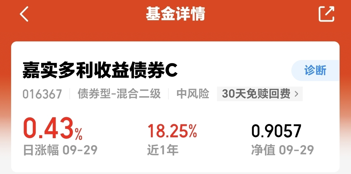 宝子们,今天三大指数全线收涨,整体赚钱效应满满呀,但债市因股债跷跷板效应导致情绪低迷,所以现在持有纯债根本拿不到什么收益还要担心碎蛋,持有权益又怕涨的太高风险太大,所以$嘉实多利收益债券C$ 它的优势就直接显现出来了。